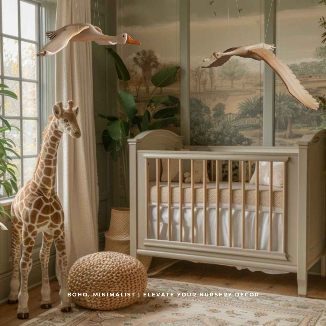 The Goose has a particularly soft and friendly quiet presence making it ideal as a nursery mobile. It's lovely over a crib where the rhythmic motion can help to sooth baby to sleep.
