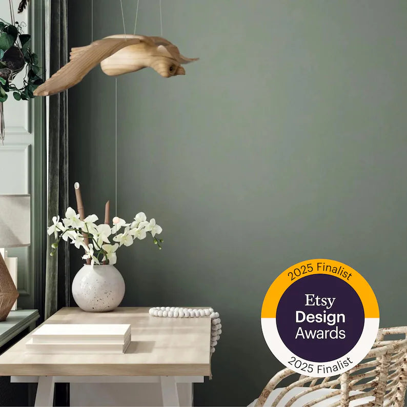 The Owl is a friendly, reassuring presence — a wise old protector with a quiet, graceful flight. Perfectly at home in rustic or farmhouse interiors, this hand-carved mobile also adds warmth and wonder to a woodland nursery. Its gentle movement and timeless symbolism make it a piece that appeals across generations.