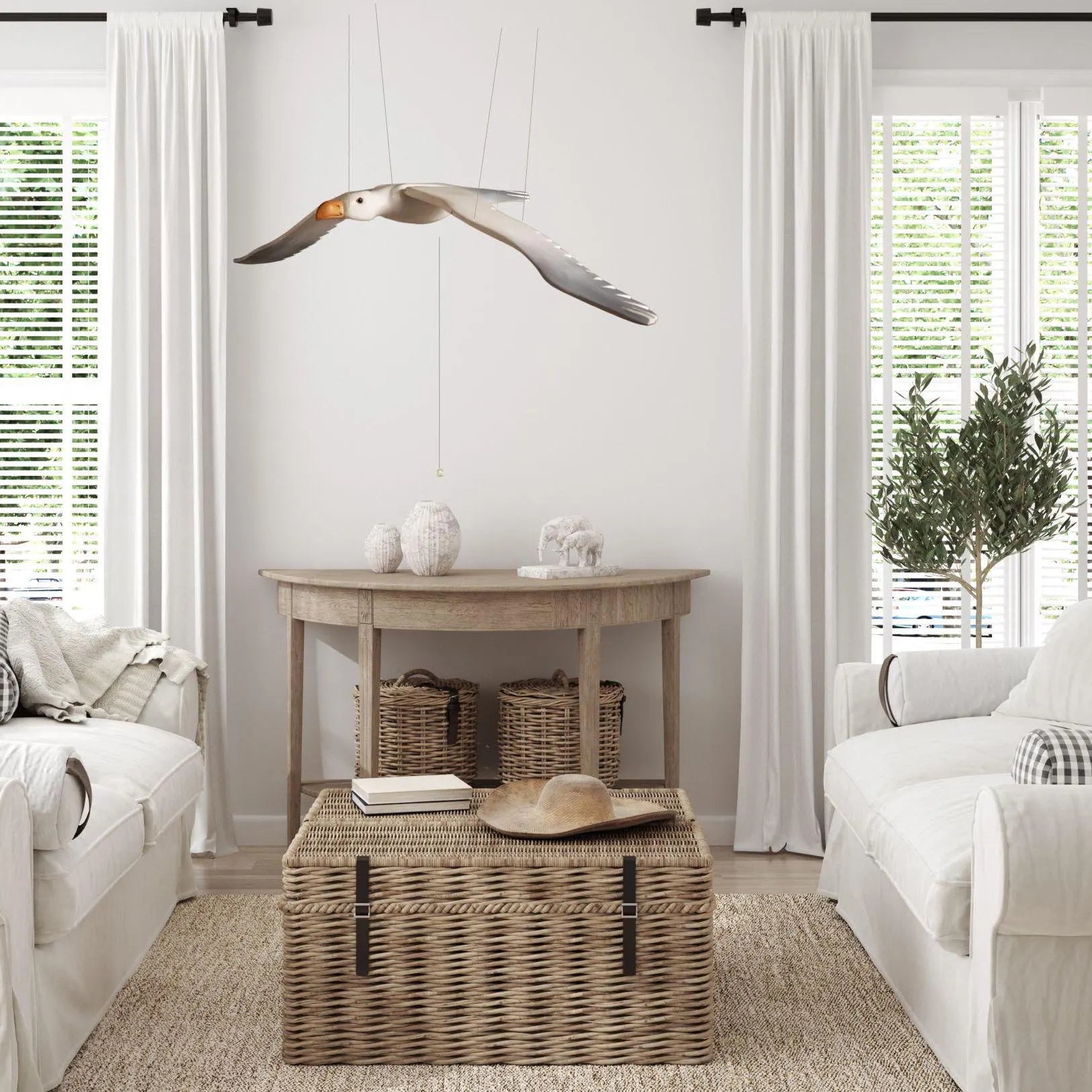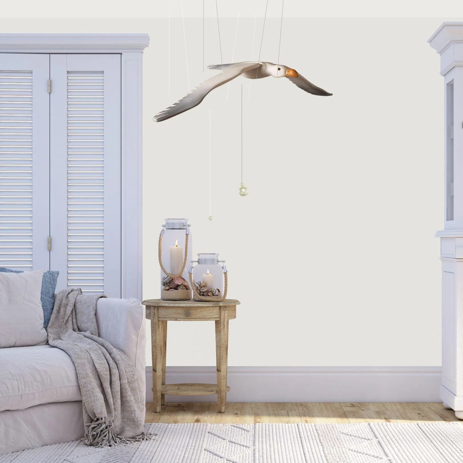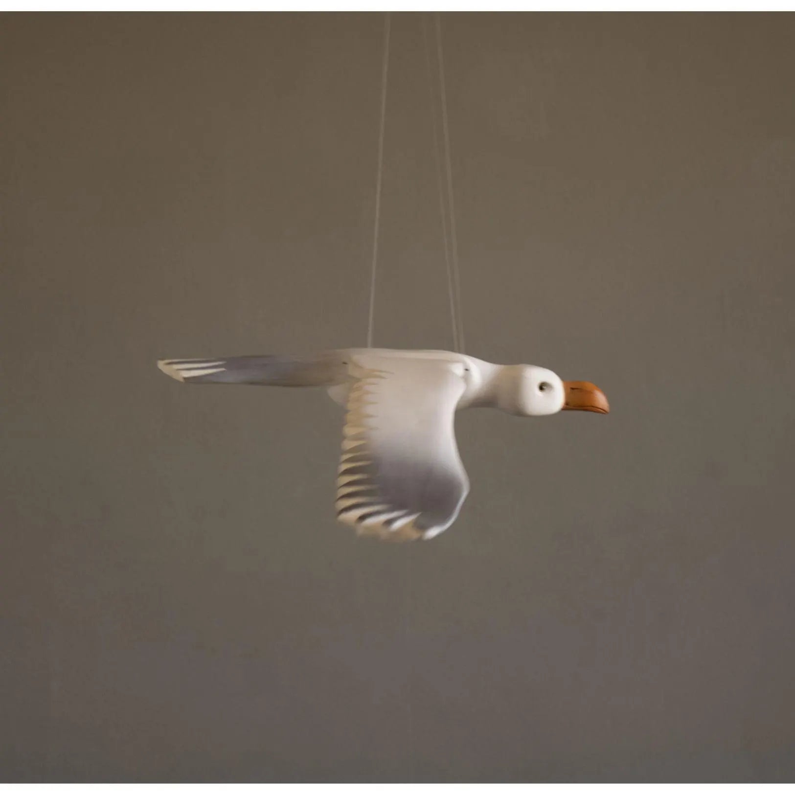 Bring the serene beauty of the coast into your home with this hand-carved wooden seagull mobile. Each seagull is meticulously crafted to capture the grace and elegance of these majestic birds. Perfect for beach house decor, this mobile adds a touch of nautical charm to any room. Ideal as a unique gift for bird lovers and coastal enthusiasts alike.