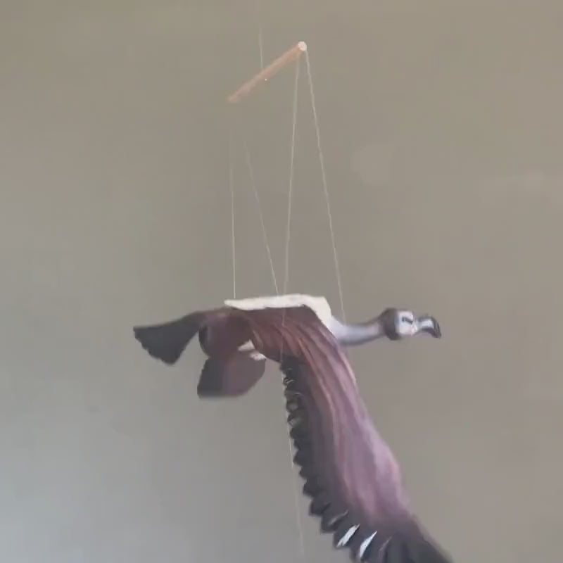Majestic and full of character, this hand-carved Vulture Mobile captures the powerful grace of one of nature’s most striking birds. With its broad wings, sculpted feathers, and proud posture, it brings a sense of wild beauty and quiet dignity to any space.