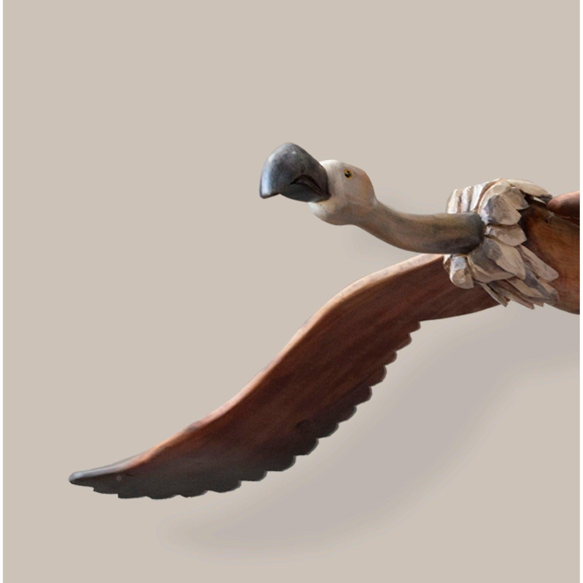 The Vulture has a majestic presence with detailed feathers around the base of it’s neck. He has a proud, graceful, elegant, souring circling presence.